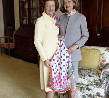 Betty Ford and Frankie Welch with the Betty Ford scarf, 1975.